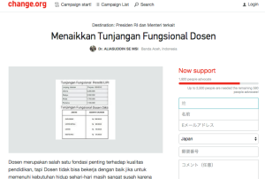 Sampai saat ini petisi yang beralamat di ( https://www.change.org/p/presiden-ri-dan-menteri-terkait-menaikkan-tunjangan-fungsional-dosen ) dan ditujukan untuk Presiden Jokowi serta menteri terkait mulai ramai mendapat dukungan. Lebih dari 1000 orang telah menandatangani petisi ini. Fenomena ini muncul setelah Presiden Jokowi menuruti para buruh karena ramai adanya petisi tentang BPJS TK Jaminan Hari Tua.