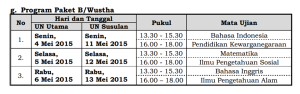 7. Jadwal Ujian Nasional Tahun Pelajaran 2014/2015 Program Paket B/Wustha