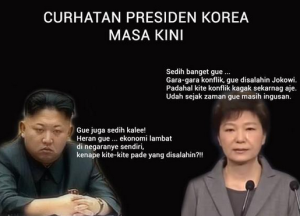 Netizen pun mulai berkoar “Kisruh korsel korut udah dari jaman kapan pak??” sebut Fitri di akun FB nya. Berikut adalah meme kocak sindiran terhadap melemahnya rupiah terhadap dolar Amerika.