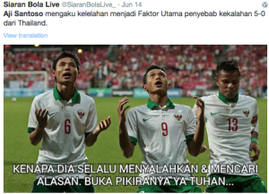 Dengan alasan kelelahan, coach Aji Santoso menampilkan susunan starting line up yang berbeda ketika Timnas U-23 melawan Vietnam di perebutan medali perunggu cabang sepakbola Sea Games ke-28. Karena Indonesia kembali kalah telak 5-0, Netizen pun ikut berkomentar terhadap keputusan Aji.